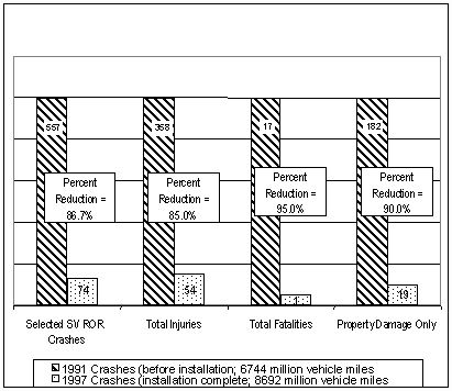data indicated an 18.3 percent reduction in single-vehicle ROR crashes